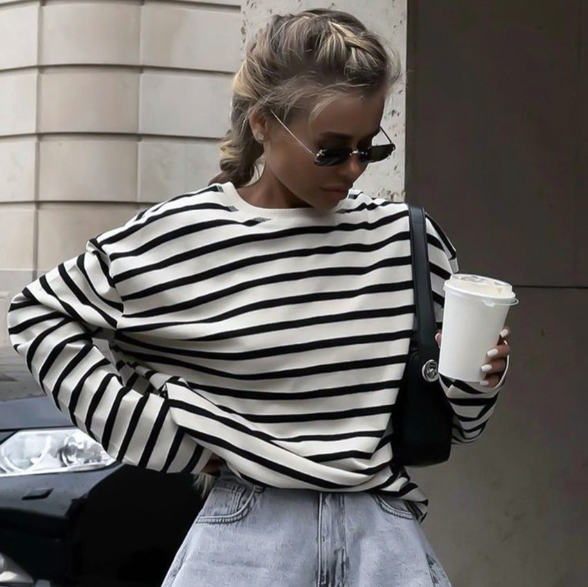 Striped long -sleeved shirt for autumn/winter - comfortable & stylish
